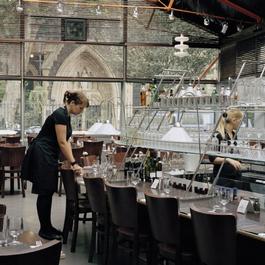 G.B. ENGLAND. London. People having their lunch outside Southwark...