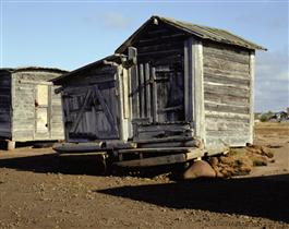 RUSSIA. Kola Peninsular. Houses on the White Sea coast. Picture...