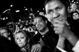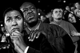 Democratic nominee Barack Obama was elected, on November 4th 2008, to be the 44th President of the USA. In Chicago's Grant Park, over half a million people gathered in an enormous 'Obama rally', to watch as events unfolded on public screens. Obama supporters fluctuated between hope, determination, pride, and joy as news of their candidate's victory was announced. Paolo Pellegrin captured moments of emotion from the massed crowd.
