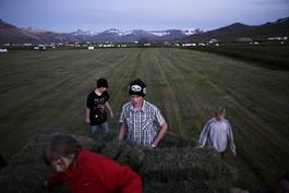 ICELAND. Borgarfjšrur Eystri. 2007. Teenagers and children work...