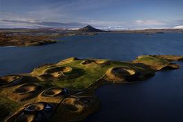 ICELAND. Lake Myvatn. 2007. Aerials of Lake Myvatn. Skutustadagigar,...