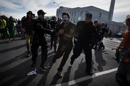 ICELAND. Reykjavik. 2007. An environmental activist being arrested...