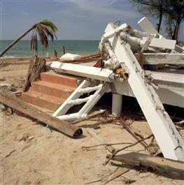 THAILAND. Khao Lak. Resort hotel debris on the beach after the...