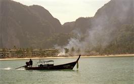 THAILAND. Phi Phi Islands. Ton Sai Bay. Approaching from the...