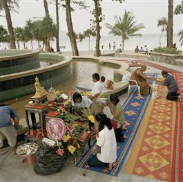 THAILAND. Phuket. Patong Beach Ð Buddhist priest prays for victims...