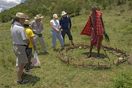 KENYA. Maasai Mara. Japanese tourists visit the Maasai village...