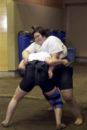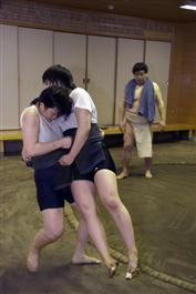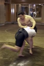 JAPAN. Tokyo. Sumo morning practice in Beya Oitekaze. 2004.