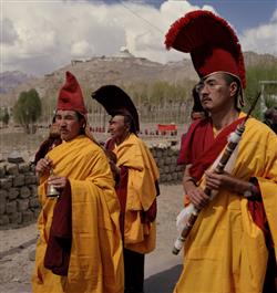INDIA. Ladakh. Leh. Buddhist temple. Carrying the sacred texts...