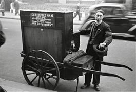GB. London. Oxford Street. World War II. The Blitz. An organ-grinder....