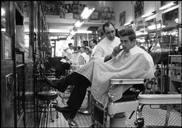 USA. New York City. 1955. James DEAN visiting a barber shop near...