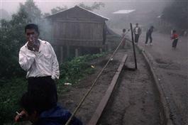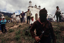Polho. 1999. Zapatistas guarding township behind ropes to keep...