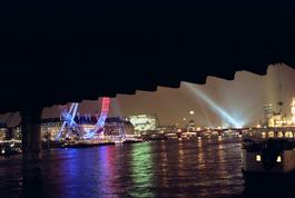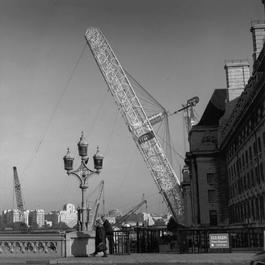 GB. London. The London Eye being hoisted into it's vertical position,...