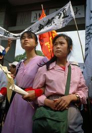 Beijing. April 17-20. Students demonstrating in Tian' anmen Square....