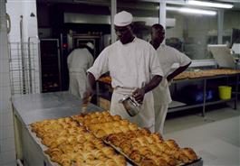 CÔTE D'IVOIRE. Abidjan. Making croissants in the middle of the...