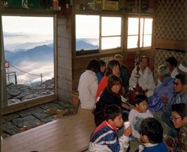 JAPAN. Tourist shops on fifth stage. Climbing Fuji considered...