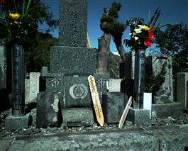 JAPAN. Yamanashi. Repairing graves, Tsuru 2001.