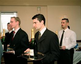 GB. ENGLAND London. Butler School.Butlers being served by staff...