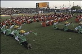 IRAQ. Baghdad. 10/2002. Folklore dance show celebrating President...