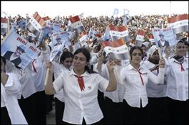 IRAQ. Baghdad. 10/2002. Mass ralley in support of President Saddam...