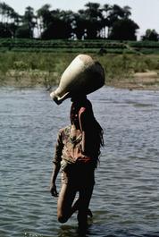 EGYPT. Along the Nile, women carry home firewood to cook the...
