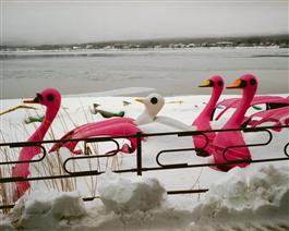 JAPAN. Lake Yamanakako. Swan pedal boats in winter. 2001.