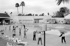 USA. Arizona. Sun City. Poolside Exercise class. The outdoor...