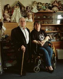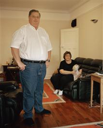 G.B. ENGLAND. Tongue Tied Danny and his wife Sue at home in