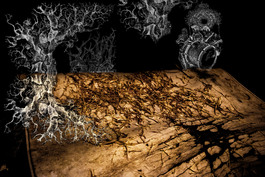 MEXICO. Tixtla, Guerrero. 2015. Dried roots of Cactus on a wall...
