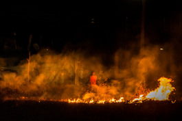 MEXICO. Chilapa, Guerrero. 2018. A person burning grass near...