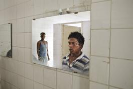 PHILIPPINES. Betis. 2013. Claython (11y), lies on a matress in...