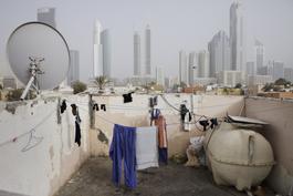 UNITED ARAB EMIRATES. Dubai. 2012. Guest workers look at the...