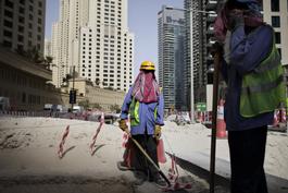 UNITED ARAB EMIRATES. Dubai. 2012. Bangladeshi street cleaner...