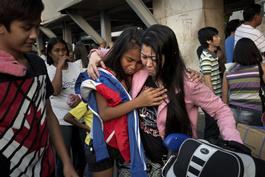 PHILIPPINES. Manila. 2013. Two sisters greet eachother with tears...