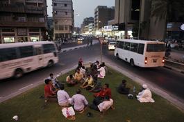 UNITED ARAB EMIRATES. Dubai. 2012. Tired South Asian workers...