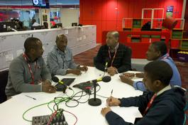 UK. LONDON. 2012. In residence at the BBC. Broadcasting from...