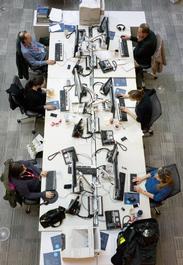 UK. LONDON. 2012. In residence at the BBC. Online editor Giles...