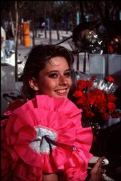 A Sevillian girl in colorful costume at the 1992 World Fair