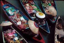 MAURITIUS. Port Louis. Women carry loads under "flamboyant" trees,...