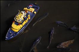 NETHERLANDS. Holland. 2007. Miniature boat or giant fish at Madurodam,...
