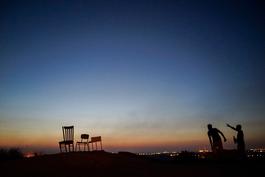 ISRAEL. Sderot. August 4, 2014. Locals watch the bombing of Gaza...