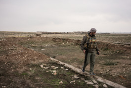 IRAQ. Sinjar. November 16, 2015. A Kurdish fighter stands at...