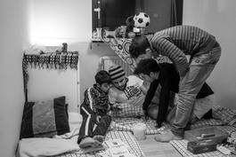 DENMARK. Svendborg. December 20, 2015. Syrian refugees and housemates,...