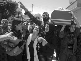 SYRIA. Amoude. May 18, 2015. Female relatives of YPG fighter...