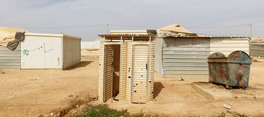 Jordan. Near Mafraq. Za'atari Syrian Refugee Camp. Lavatory block....