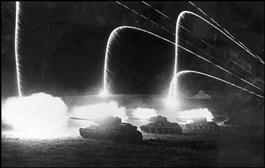 USSR. 1942. Tanks firing at night during the battle of Stalingrad....