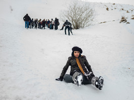 Iran. Darbandsar. 2016. A group of young Iranian extreme skiers...