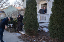 USA. Aurora, Illinois. 2015. The Al Hajali family outside their...