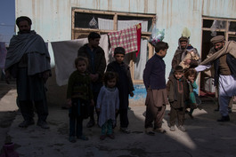 AFGHANISTAN. 2015. Internally displaced people in front of their...