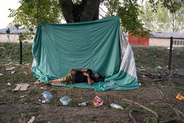 CROATIA. Tovarnik. September 17, 2015. Muhanid sleeps at the...