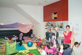 2015. Vienna. Austria. Brahim and Ali play at a hotel in Vienna....